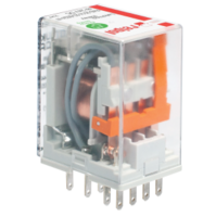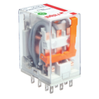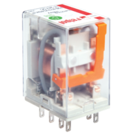 Compact relays with general application, featuring cadmium-free contacts and AC/DC coils. These relays can be used with plug-in sockets, mounted on a 35 mm rail, or on a panel. They come with standard features such as a mechanical indicator and a lockable front test button. Additionally, relays can be equipped with test buttons (without latching) and plugs. These relays adhere to the railway standards set by AUCOTEAM GmbH Berlin.