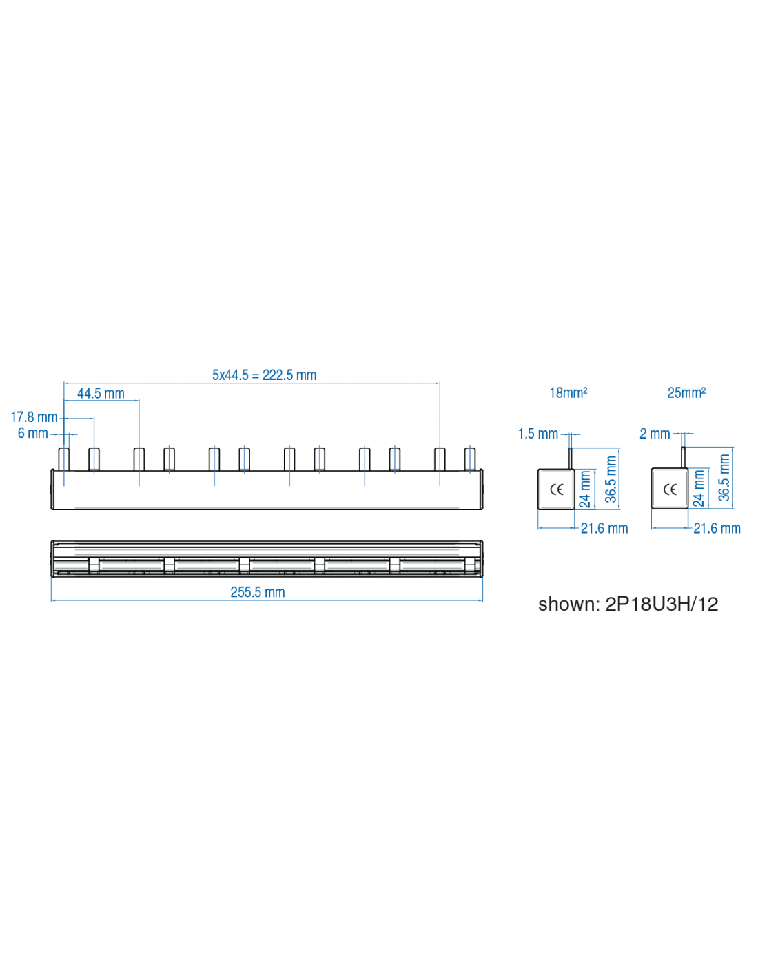 2P25U3H/16 - UL 508 & UL 1077 - 2 PHASE BUSBAR - 1/2 pole spacing