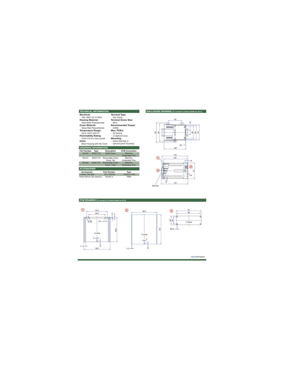 30 Terminal, Solder Connection, 35 mm DIN Rail or optional panel mounting*