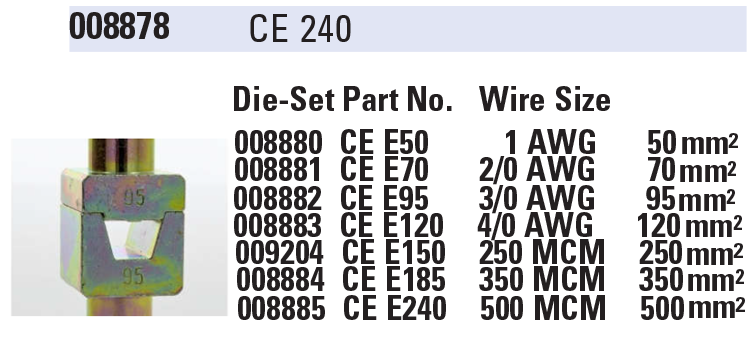 Individual crimp cavities conform to industry standard insulated and uninsulated ferrules from 1 - 500 MCM AWG 50-500mm2)
