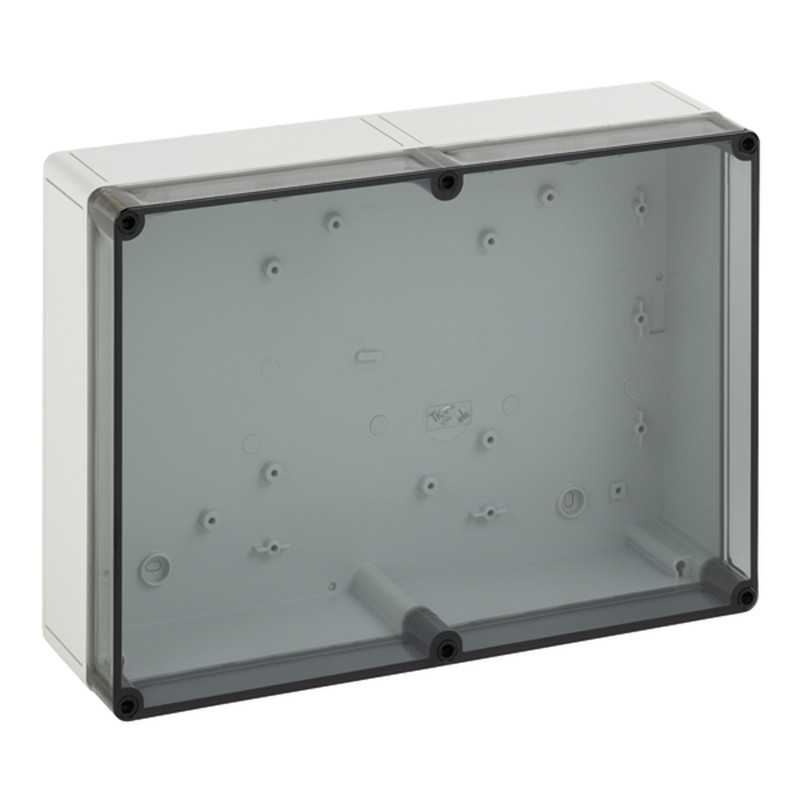 Enclosure, Polystyrene, Gray with tinted transparent cover, Smooth Sides